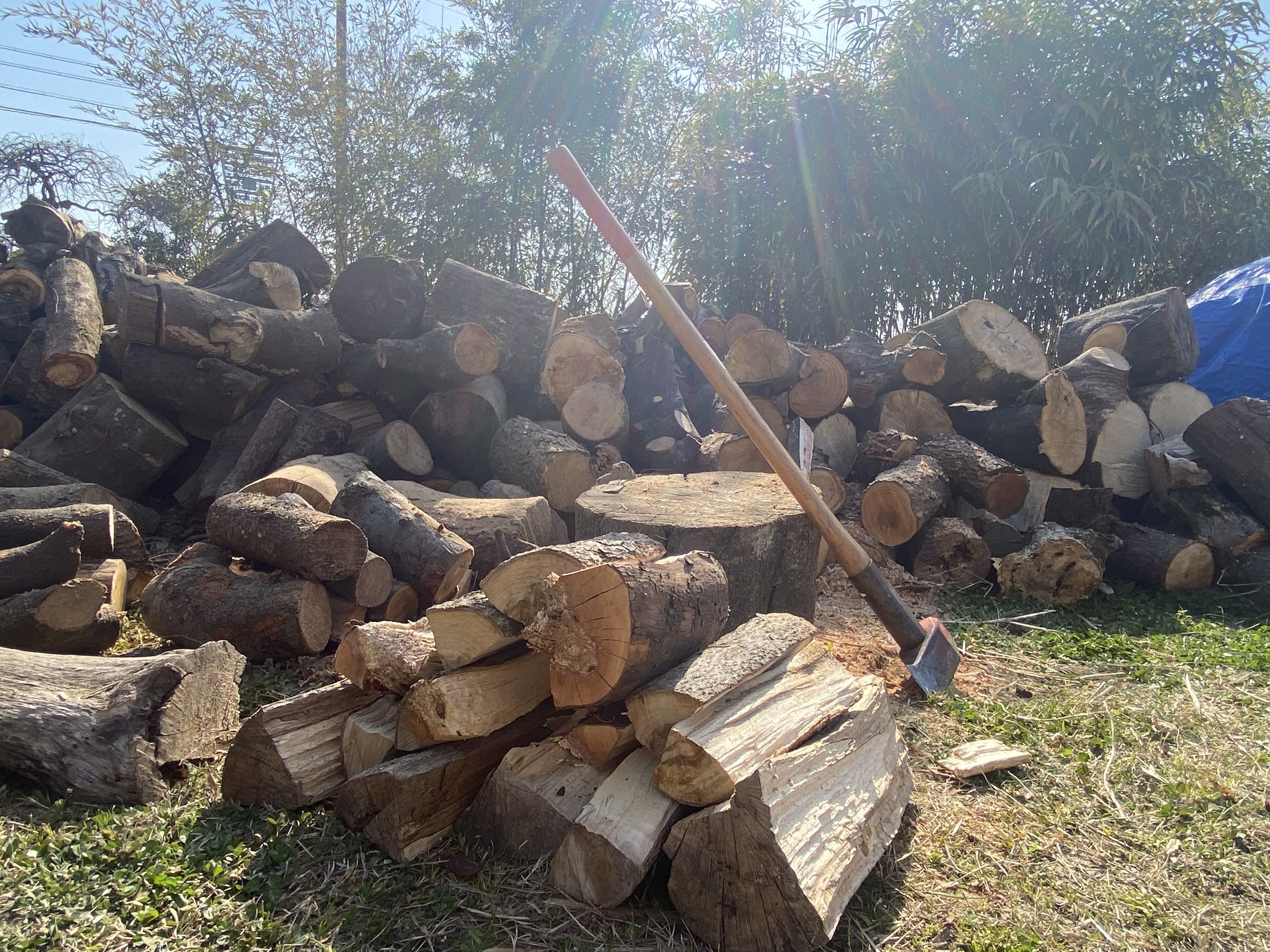 アイコウエンでは造園の際に出た間伐材なども含めた薪をお値打ちに販売しています。